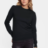 Normál szabású kötött blúz, hosszú ujjal, kerek nyakkal és enyhén puffasztott vállpánttal. a blúz nyakában, ujján és alján bordázott. A modell M-es méretet visel.
