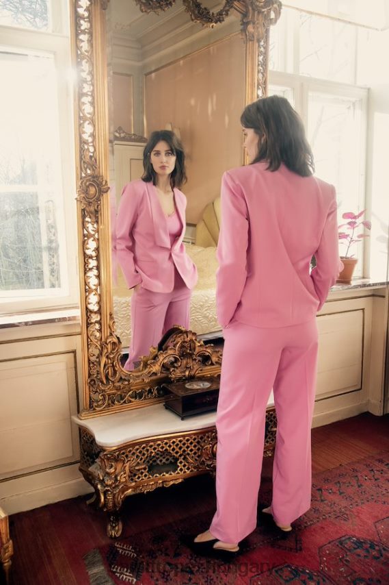 normál szabású öltönynadrág, széles szárral, oldalzsebekkel, gombbal és cipzárral záródik. a nadrág szőtt minőség.frederikke 180 cm és m-es méretet hord.